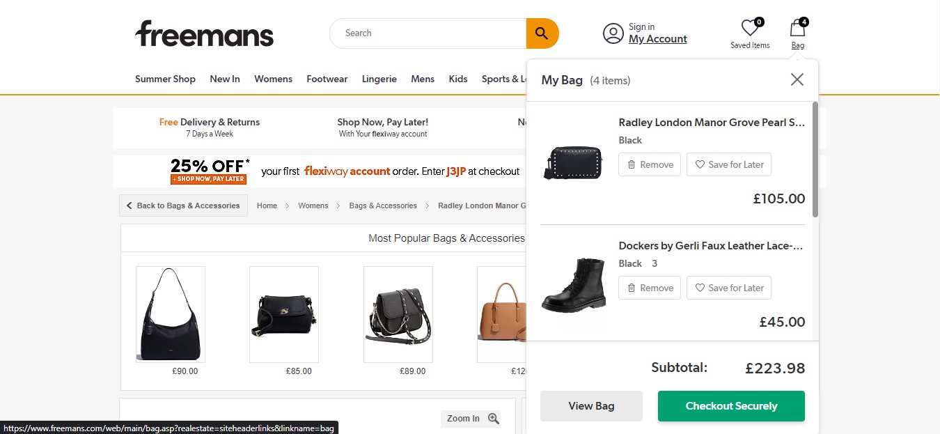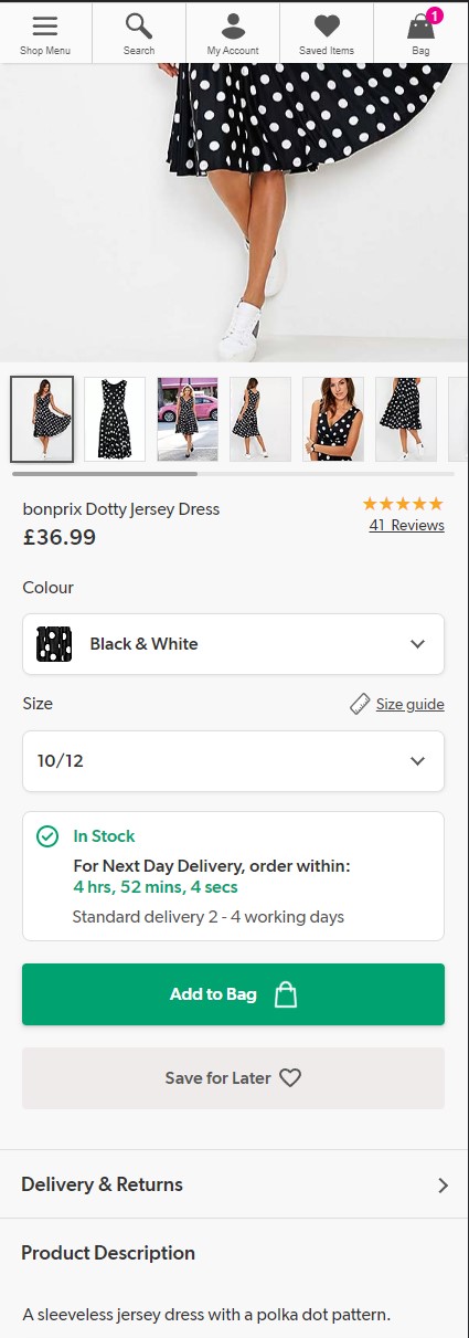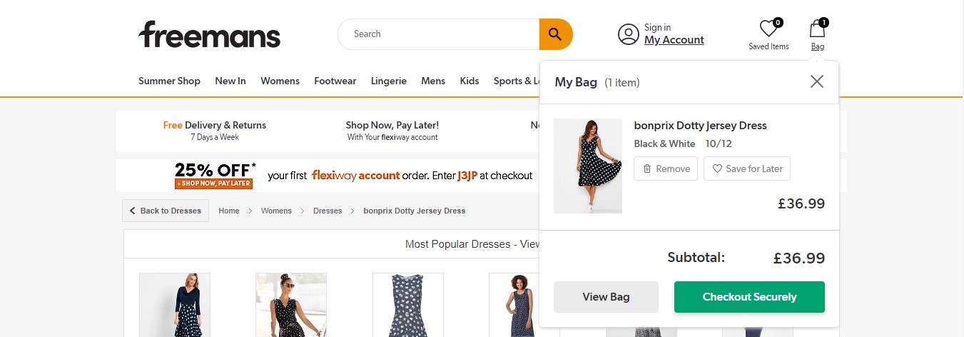 After carrying out competitor analysis, I noted that of the retailers that did utilise a "mini" bag on desktop, very few of them implemented it on mobile.